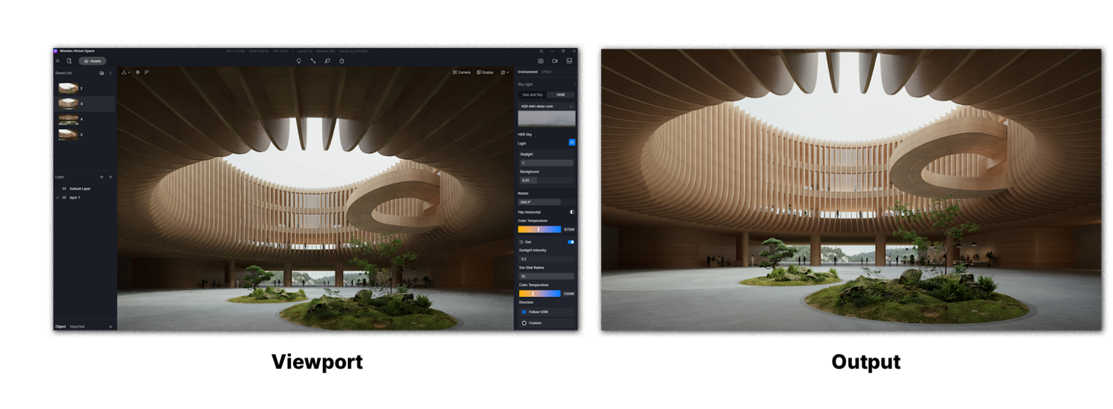 Bij D5 Render werkt het helemaal anders. Terwijl je in D5 werkt, zie je alles realtime op je scherm met 60+ beelden per seconde. Wil je dan toch een beeld in 4K exporteren? Dat duurt maar enkele seconden.